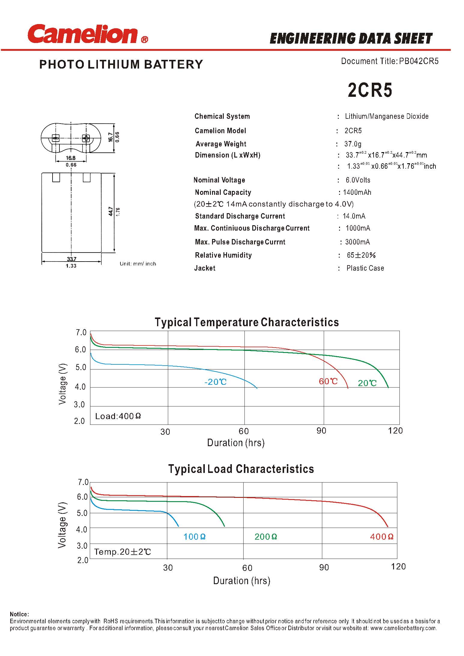 2CR5 Camelion 2CR5 Lithium Foto Batterie 6V